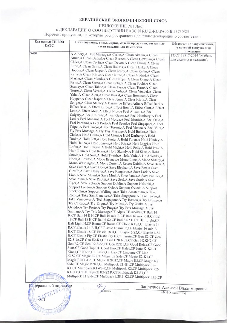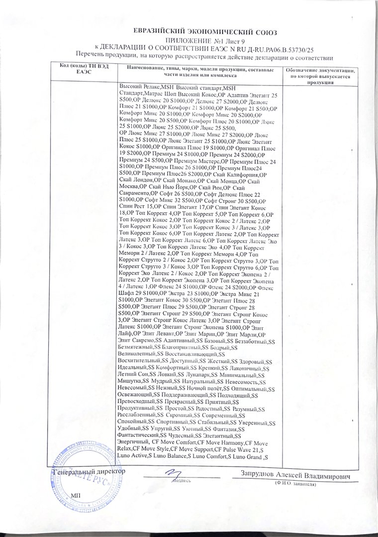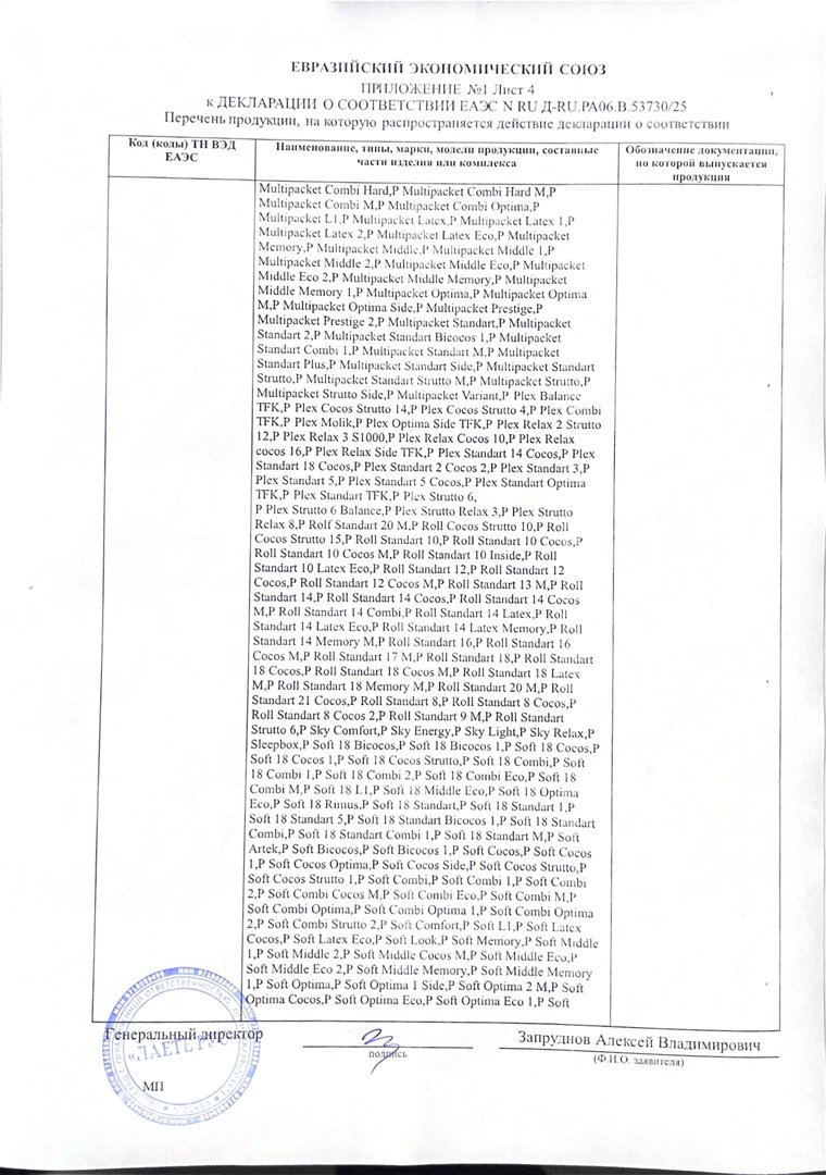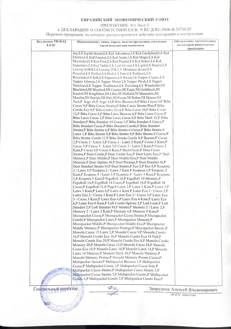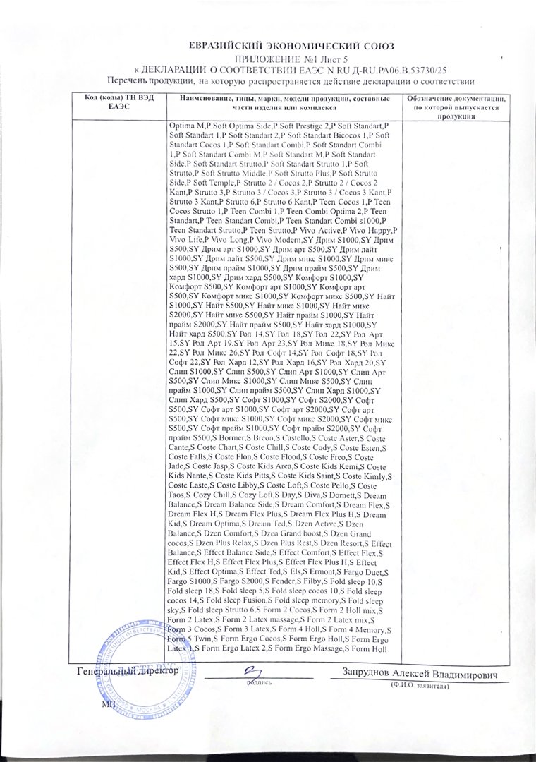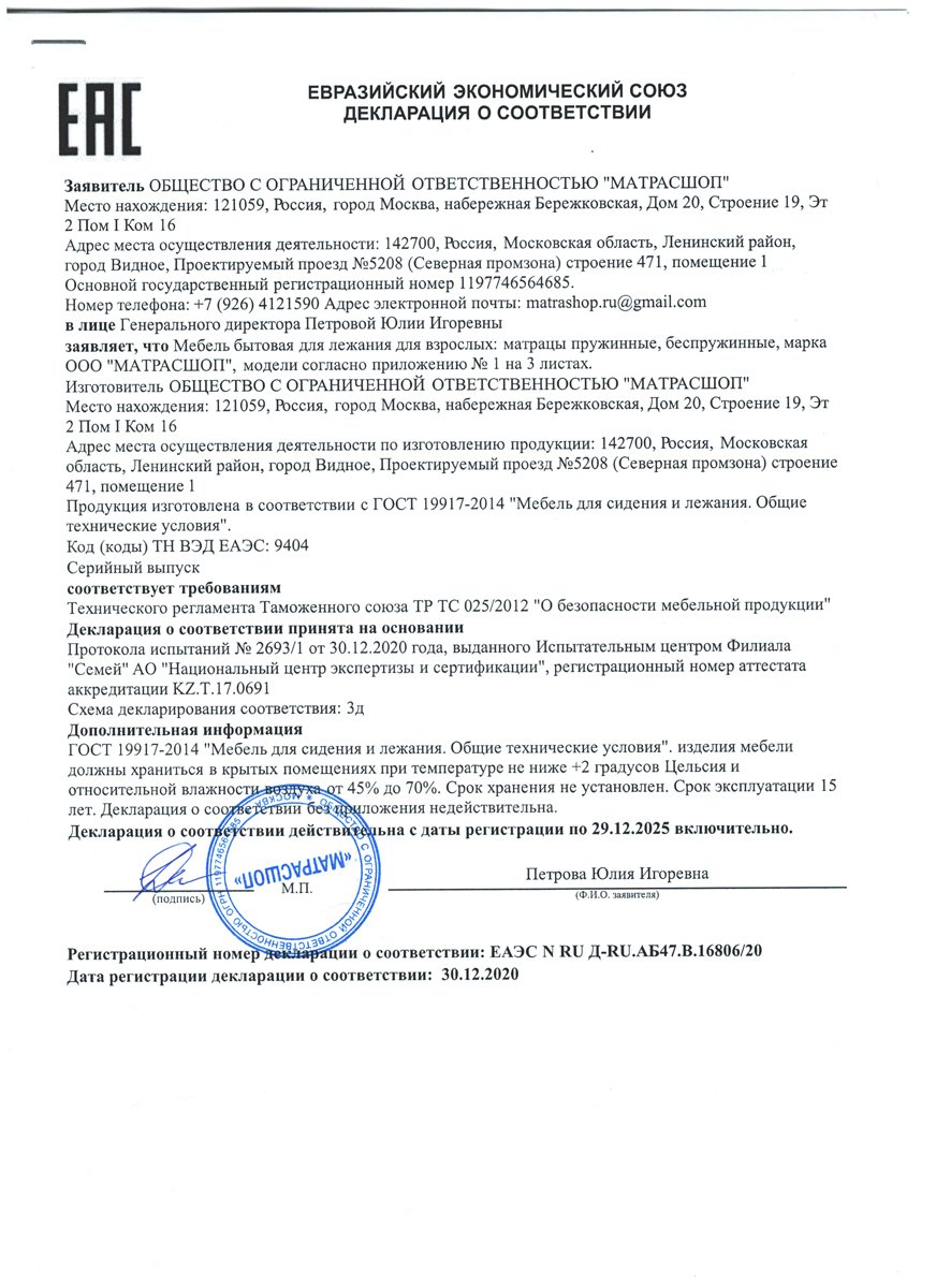 - Гарантия принимается на матрасы при сохранении вшитой в боковую часть матраса этикетки (QR-код, технические характеристики матраса) а также документов, подтверждающих факт совершения покупки.