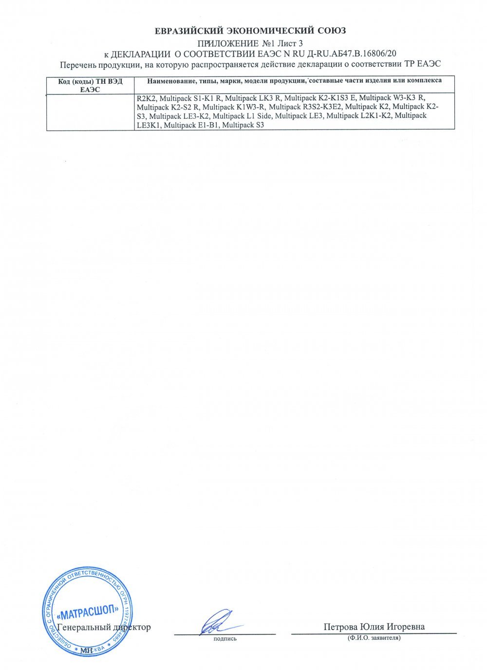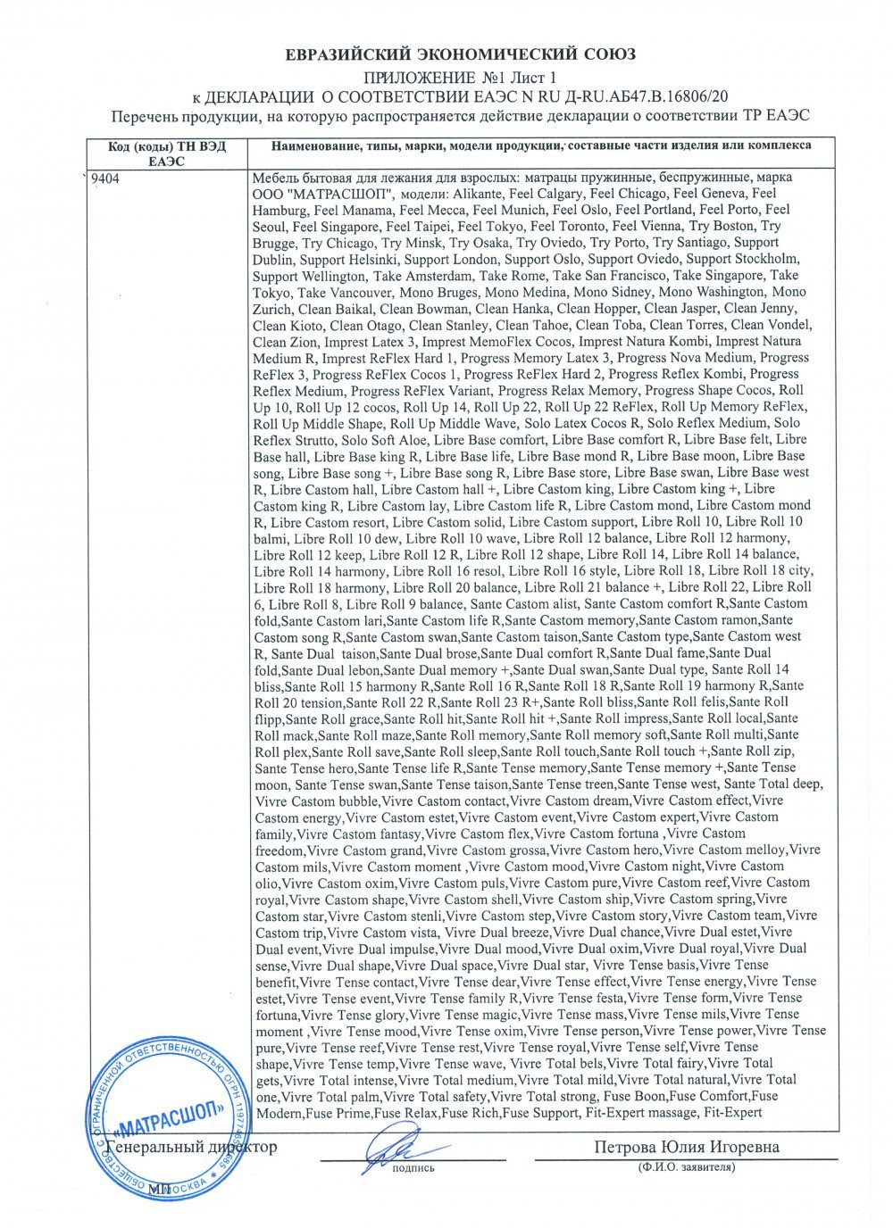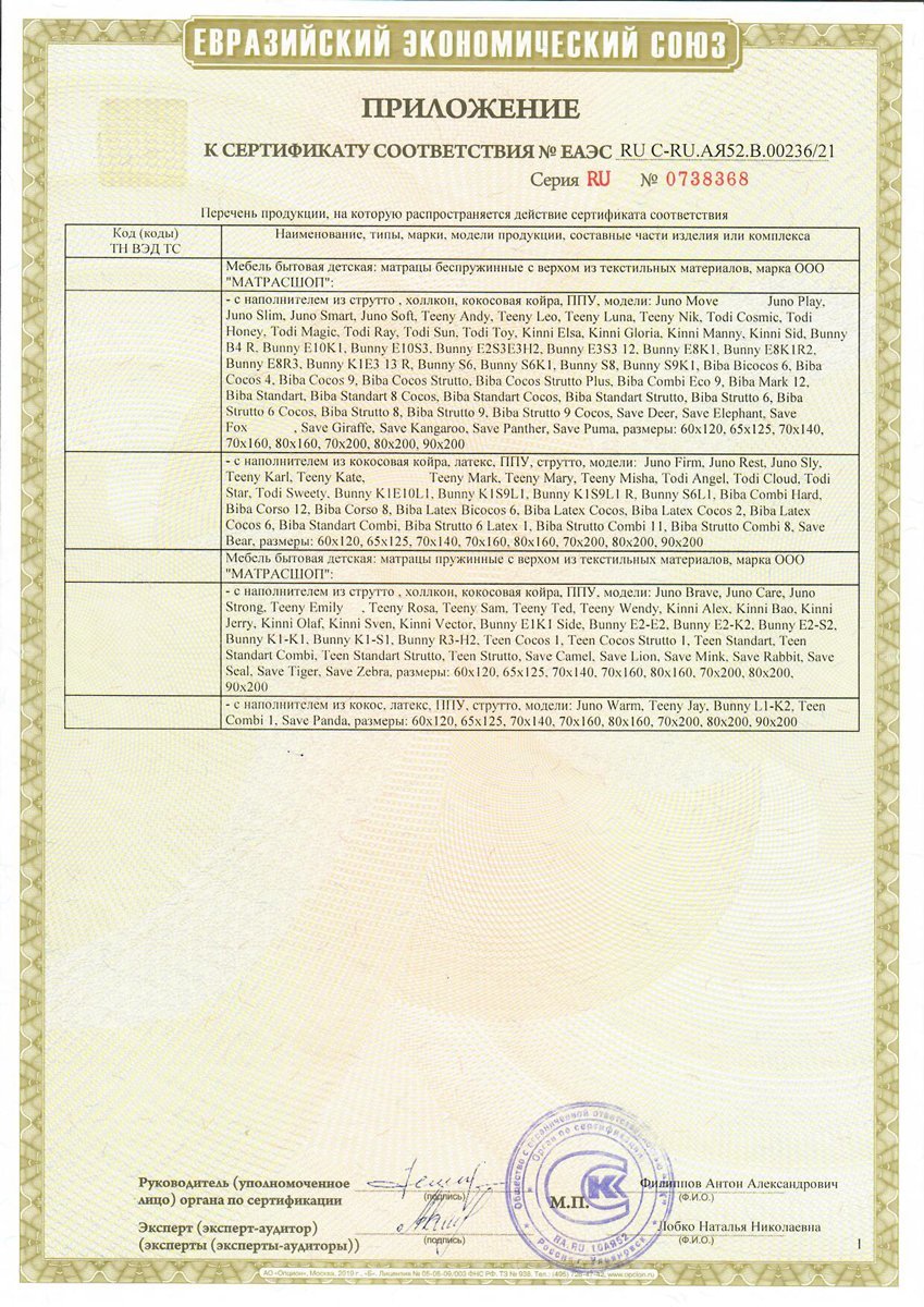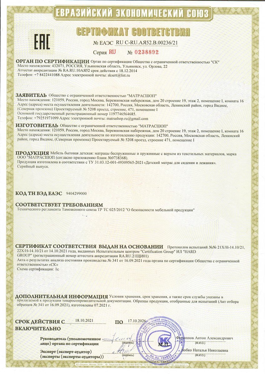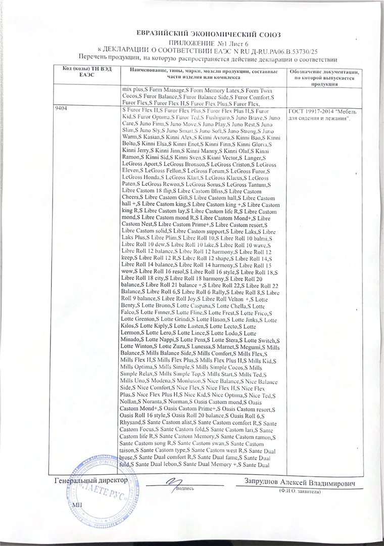 - Гарантия принимается на матрасы при сохранении вшитой в боковую часть матраса этикетки (QR-код, технические характеристики матраса) а также документов, подтверждающих факт совершения покупки.